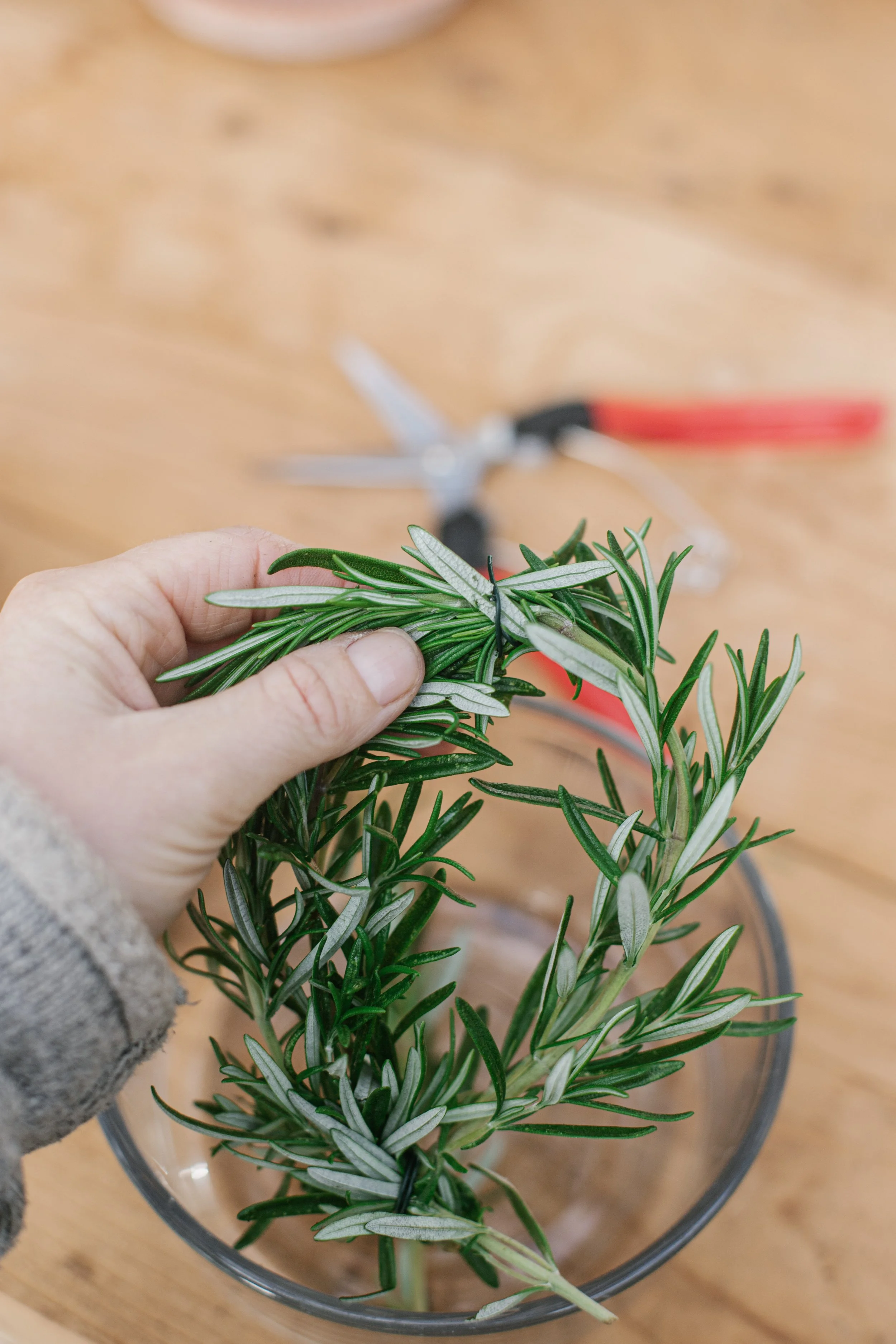 Tip: Try harvesting rosemary the morning of your crafting session. The stems are more flexible when freshly cut, and the scent is incredible.