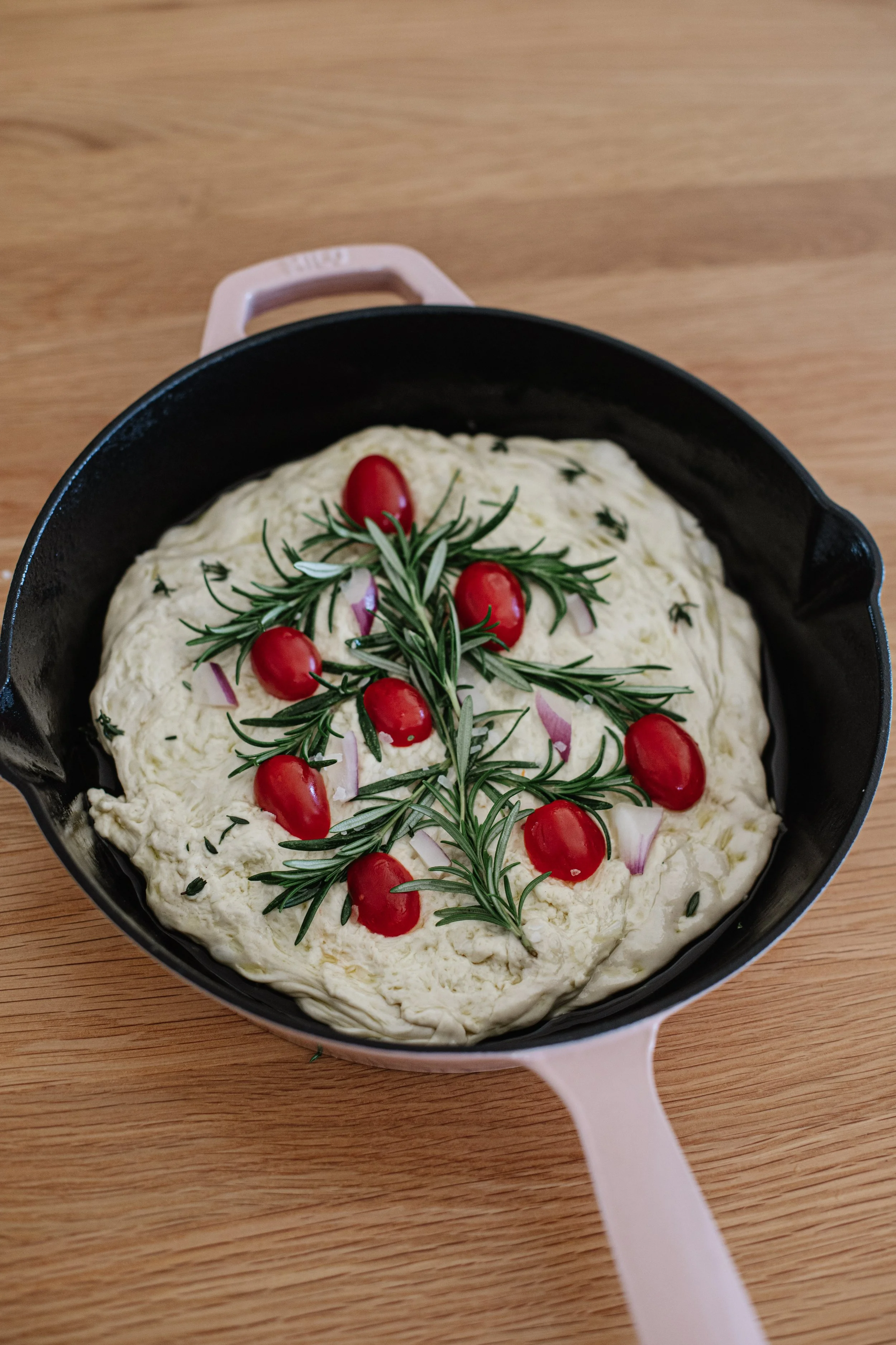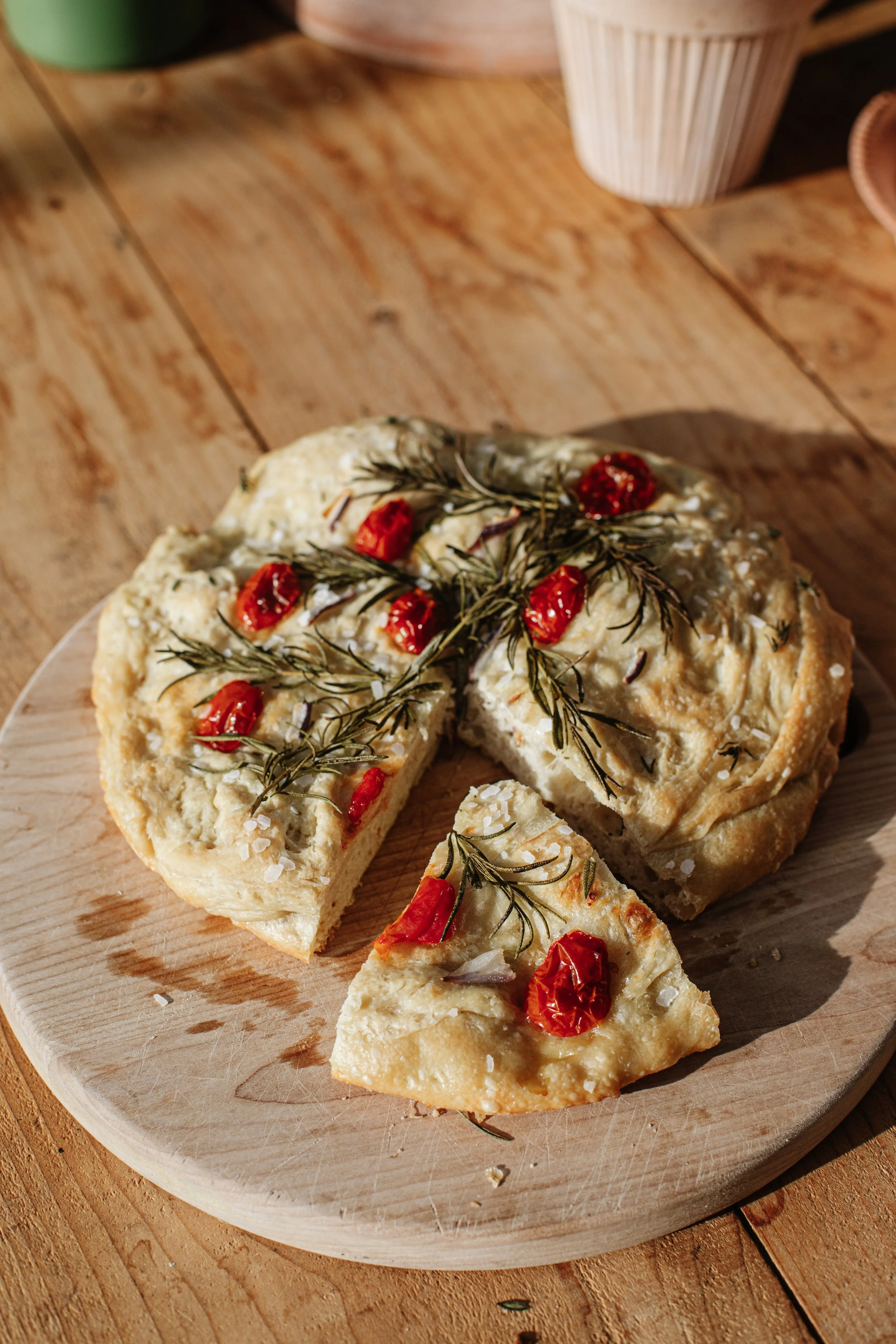 The holidays are just around the corner, which means hosting, cooking and wrapping presents! Whether you’re looking for a great appetizer or side dish recipe to serve your guests, or you just want to use up some of your home grown goodness from the garden this holiday season, this delicious holiday focaccia bread is so easy to make, tastes fresh and can be easily decorated with your favourite toppings!