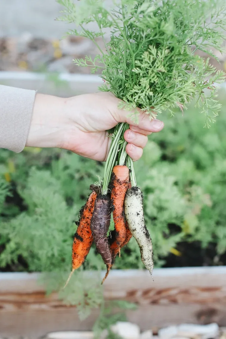 Carrots take longer to fully mature (choose varieties that mature within 80 days), but fall is a great time to plant them. The cool weather helps develop their natural sweetness, and with a little mulch or fresh compost rich soil, they can stay in the ground until you’re ready to harvest & enjoy after your first frost date.